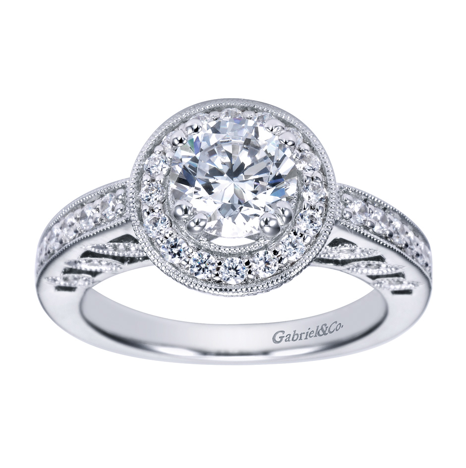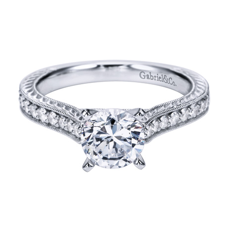 Diamond engagement rings and band available in 18k engagement ring with round center, marquise, and baguette cut diamonds available in palladium, ring in 14k gold with 0.65 carats of diamonds from gaBriel & Co., suggested retail $2,547, (800) ... View This Document